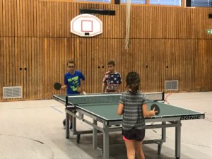 Ausgeschiedene Spieler hatten die Möglichkeit an weiteren aufgestellten Tischen gegeneinander zu spielen bzw. sich von den anwesenden Betreuern neue Schläge und Kniffe zeigen zu lassen.