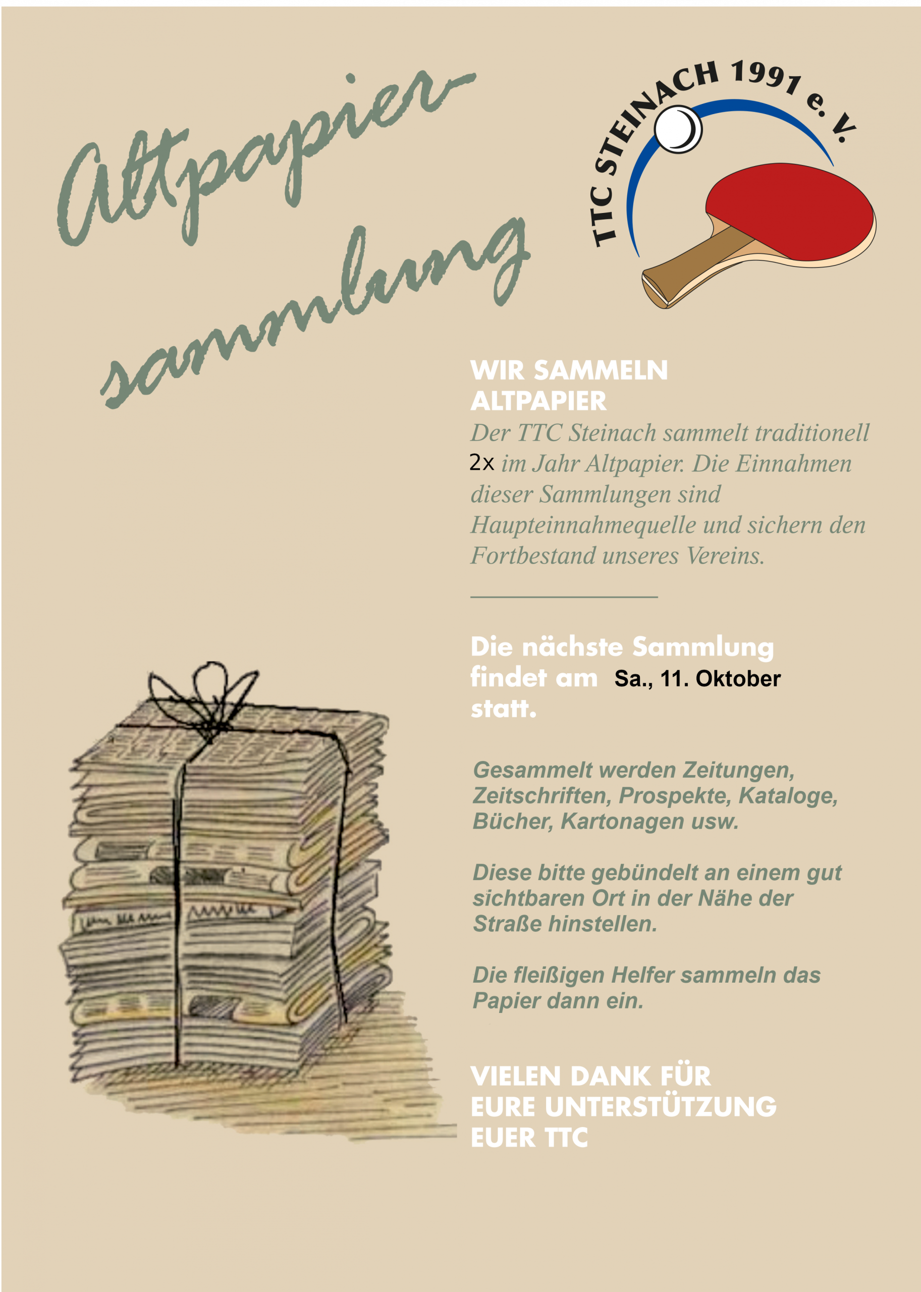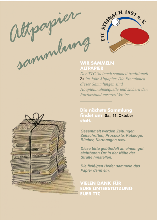 Am Sonntag, 09. November 2025, finden um 14 Uhr (Hallenöffnung 13.15 Uhr) in der Steinacher Turnhalle die diesjährigen mini-Meisterschaften im Tischtennis zum 43. Mal statt.